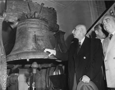 Iranian Prime Minister Mohammed Mossadegh admires the Liberty Bell during a visit to Independence Hall in Philadelphia in Autumn 1951.